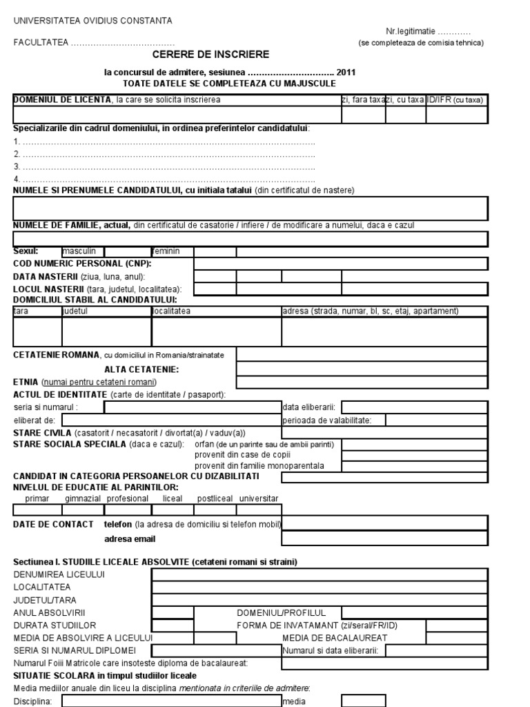 Cerere de inscriere examen bacalaureat 2011 bacalaureat 2014: Sesiunea de toamnă a examenului de bacalaureat 2021 începe pe 16 august. Acestea vor fi depuse in scoli intre 31 mai si 4 iunie. Documente necesare pentru înscrierea la examenul de bacalaureat 2021. Elevii care vor susține examenul de bac 2021 trebuie să completeze o cerere de înscriere și un tabel.